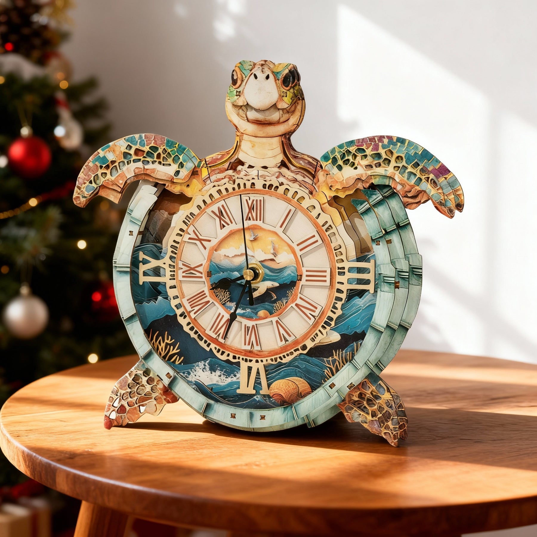 Sea Turtle 3D Wooden Puzzle Clock, Gift for DIY Lovers, Home Decor