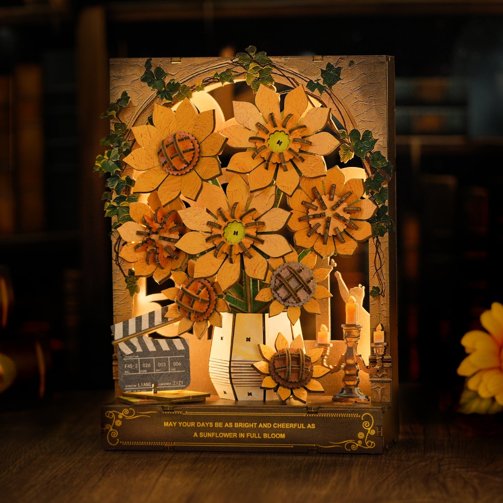 Sunflower 3D Wooden Puzzle Painting, DIY Wall Art Craft Kit with Light