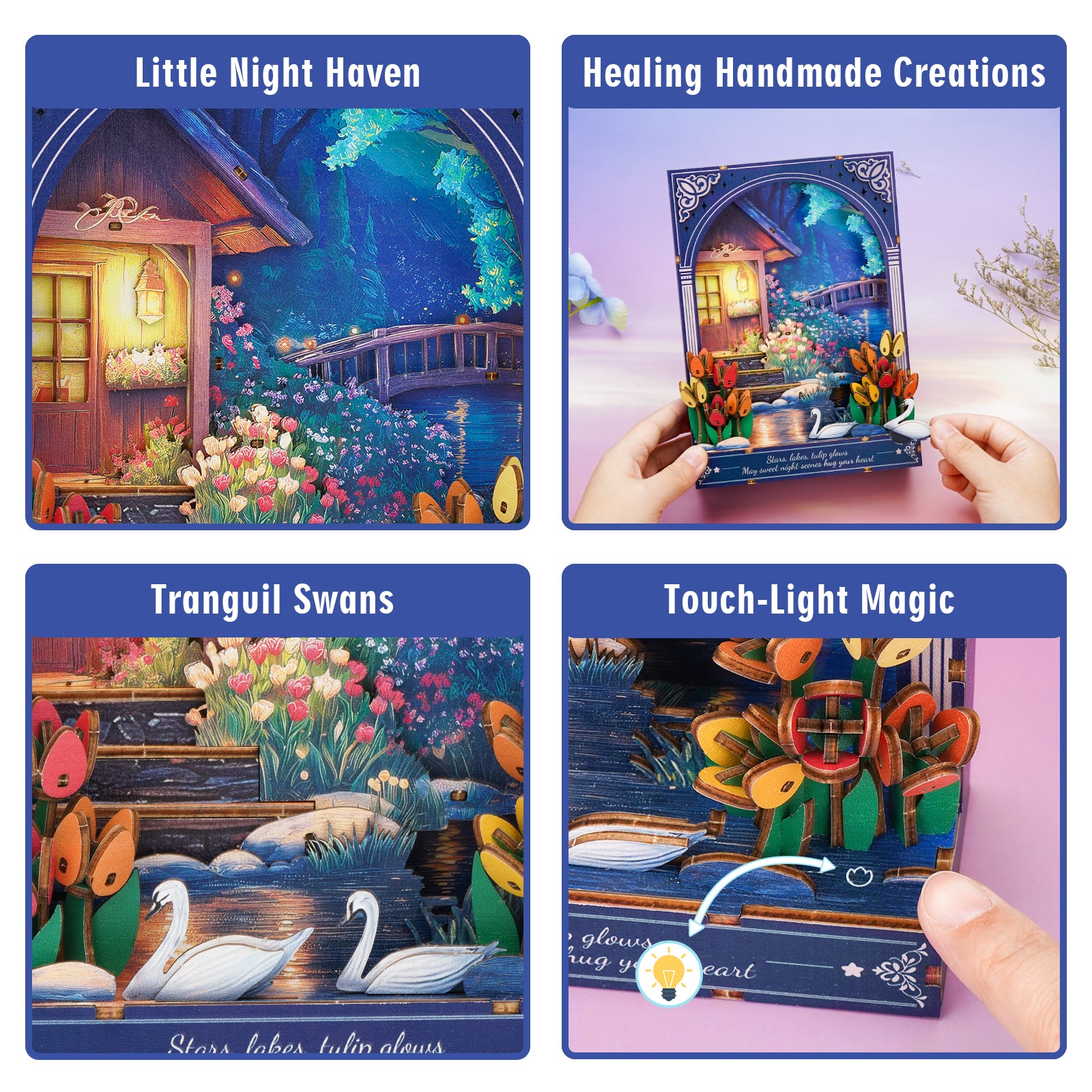 Swan Lake Serenade 3D Wooden Puzzle Painting, DIY Wall Art Craft Kit with Light