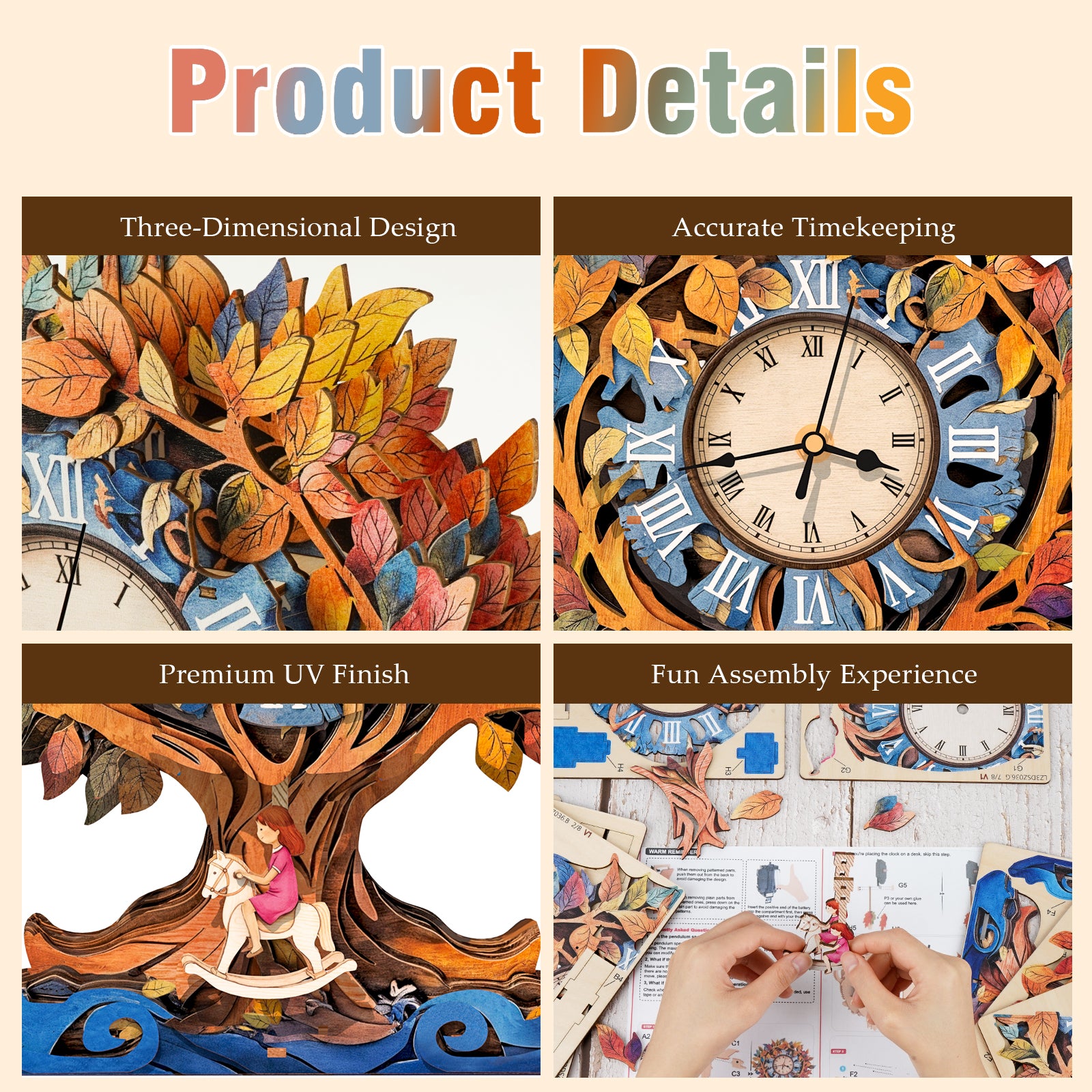 Tree of Life 3D Wooden Puzzle Clock, Gift for DIY Lovers, Home Decor